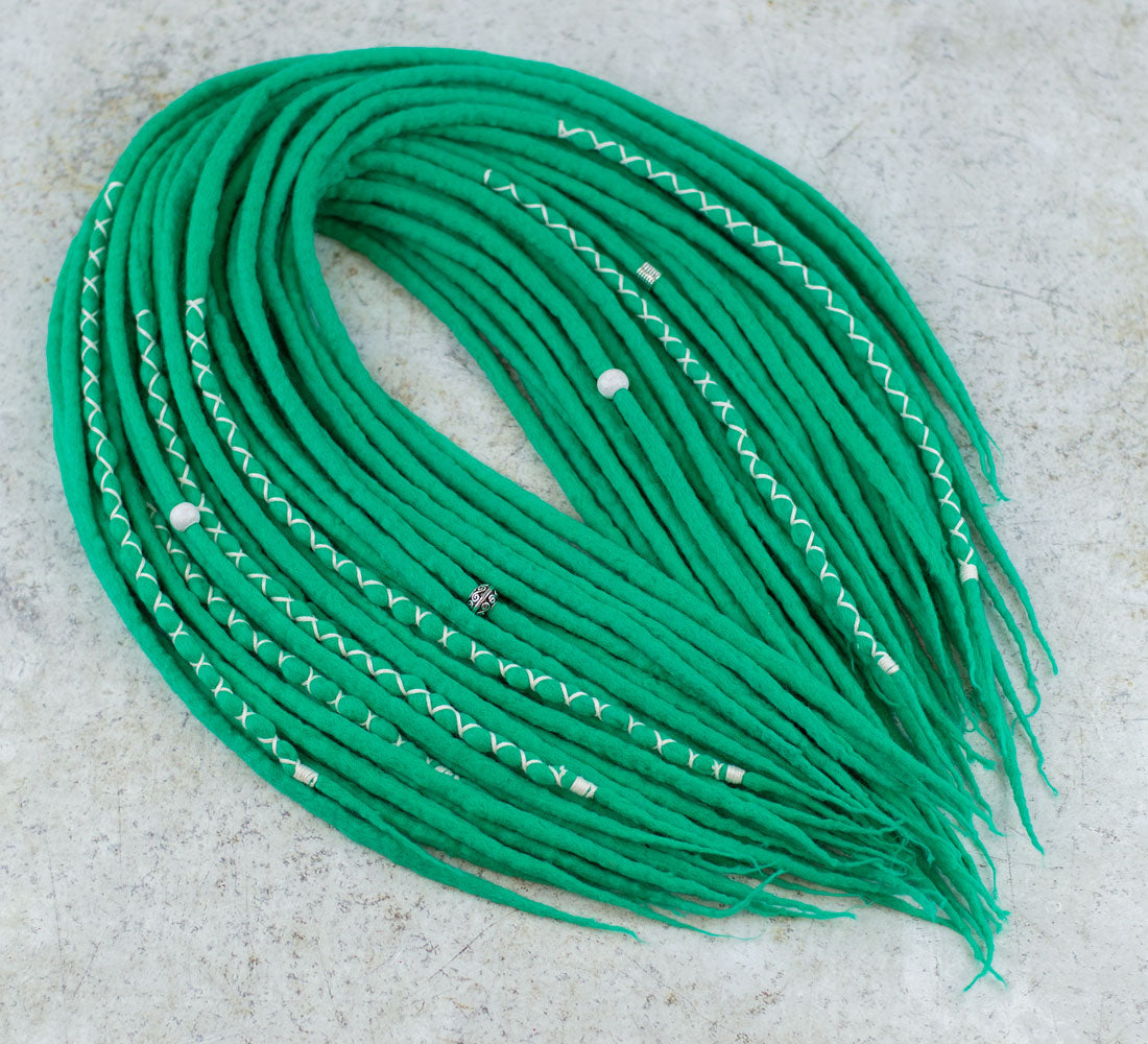 Handmade from extra soft merino wool, the Aqua green wool dreads offer single and double ended versions for itch-free wear.