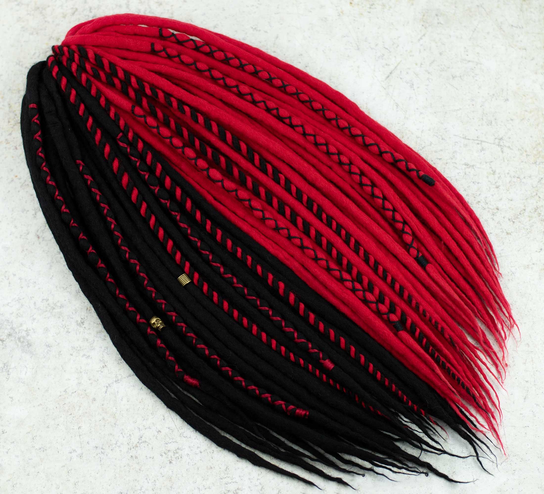 Dare to be different, embrace the symbolism of black and red and experience the natural comfort and durability of wool. Let your inner beauty blossom with these wool dreadlocks. Make a statement and do it boldly.