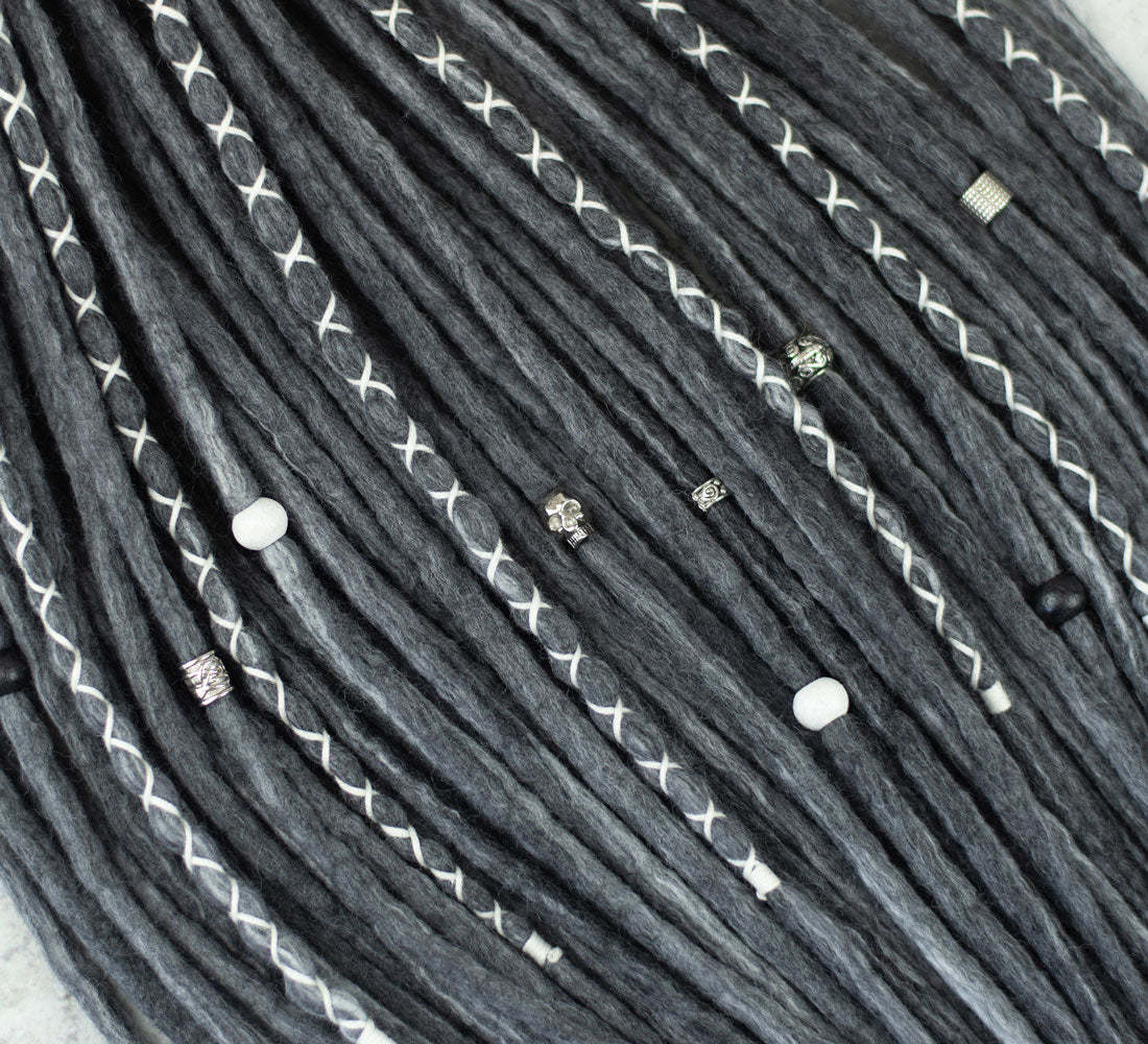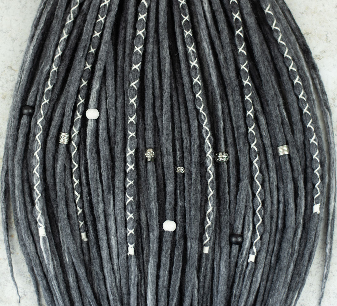 Hide your grey hairs! Mix a few locks of Monochrome wool dreadlocks with your current dread set! Or be yourself and braid a full set with this beautiful grey hair extension.