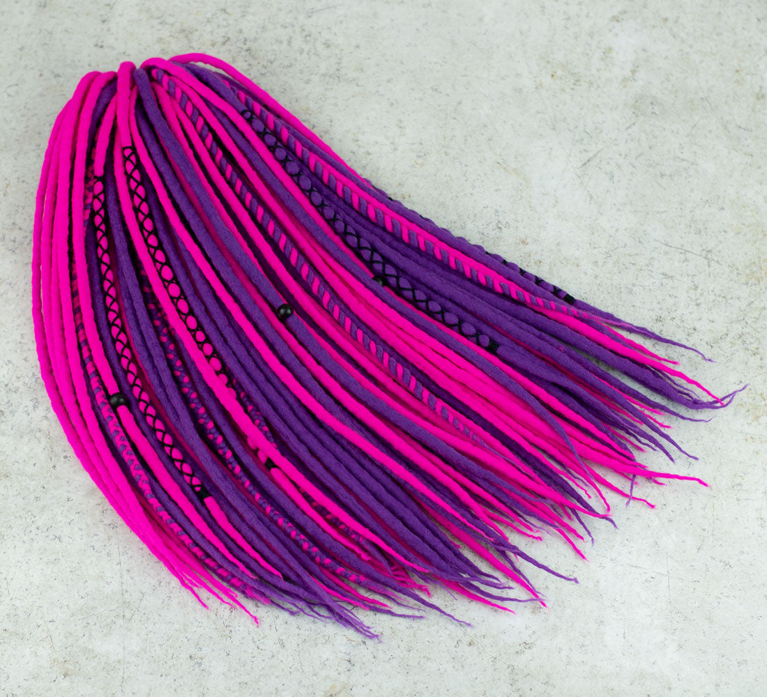 Neon violet wool dreadlocks