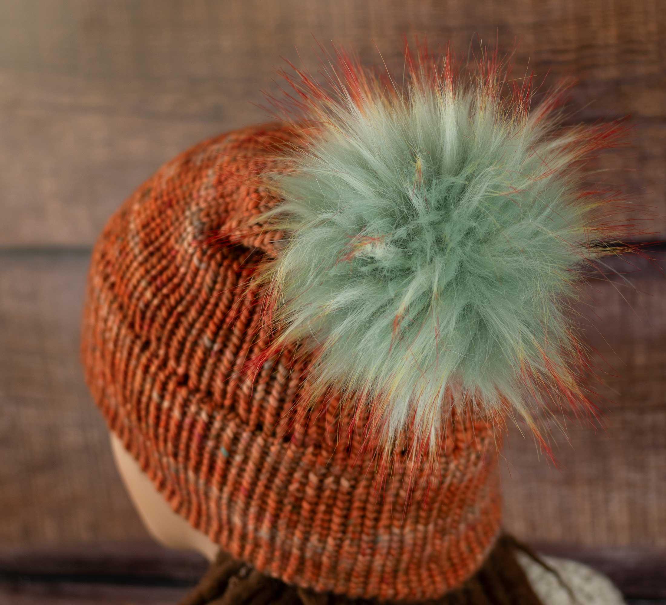 The faux fur pompom is attached to the beanie with a snap. Can be removed for washing.