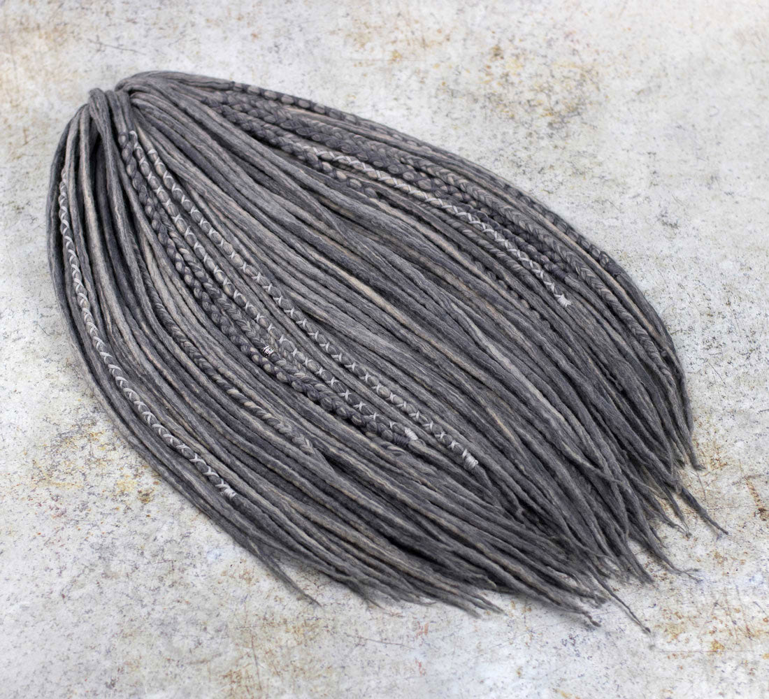 Grey blended wool dreads and braids