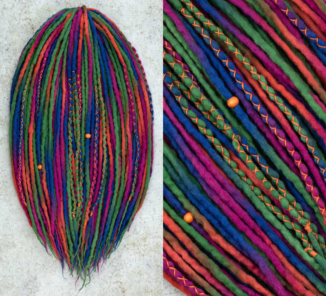 Wool dreadlocks are a unique and fashionable way of self-expression! Dreadlock extensions made of natural materials are soft, durable and easy to maintain.